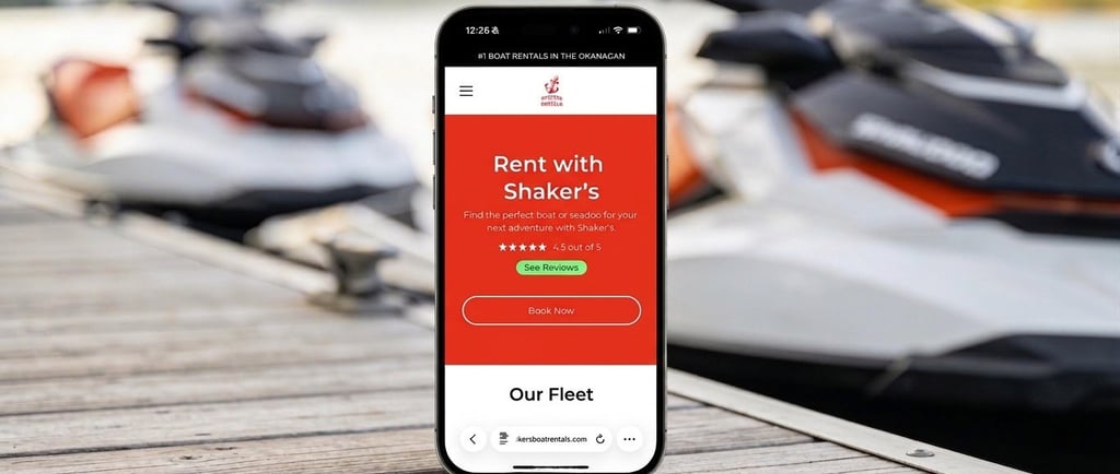 Level Up Design led a complete digital transformation for Shakers Boat Rentals, rebuilding the website from the ground up and redesigning the logo to create a stronger, more modern brand presence. The live site presents Shaker’s Boat Rentals as “Kelowna’s #1 Boat and Seadoo Rentals,” which supports positioning the project as a full brand and website elevation rather than a simple visual refresh.